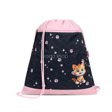 Tornazsák, BELMIL Cute Kitten, fekete-rózsaszín, cica -méret: 43x45 cm -anyag:poliészter -1 fő rekesz + 1 cipzáros elülső zseb Gyártó/első EU forgalmazó elérhetősége: Corwell Kft. H-2120 Dunakeszi, Pallag utca 37. corwell@corwell.hu www.corwel