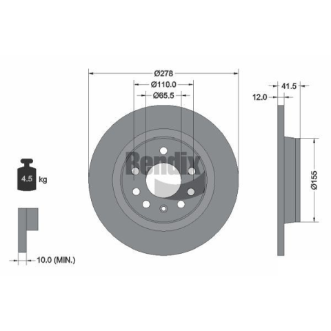 1 kép BENDIX Braking féktárcsa BENDIX Braking BDS1181