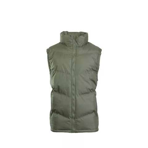 Egyenes szabású, funkcionális kialakítású pufi mellény. - cipzáras záródás - álló gallér - két cipzáras első zseb - poliészter bélés