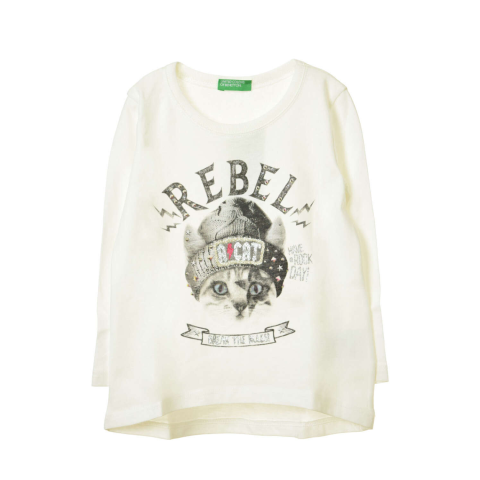 Benetton fehér, macskás lány póló – 82 cm gyerek póló 1 kép