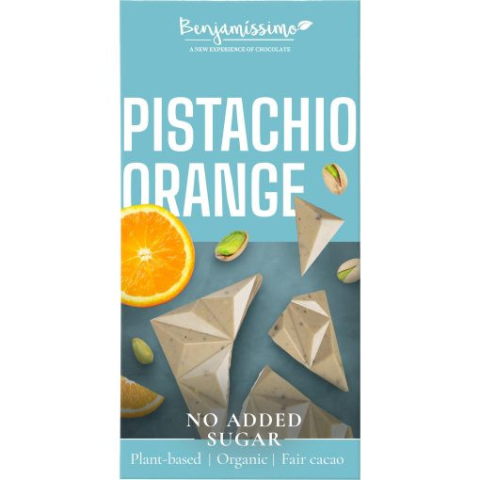 1 kép Benjamissimo BIO, vegán, hozzáadott cukormentes csokoládé pisztáciával és naranccsal 60 g
