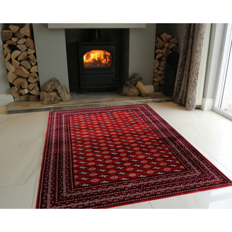 Abu klasszikus mintázatú szőnyeg piros színárnyalatban, 160 x 230cm méretben. A Polyester alapanyagból készült darab puha tapintású, mégis strapabíró, ideális választás a nappaliba vagy étkezőbe. 8 mm vastagságával kellemes járófelületet biztosít. A szőny