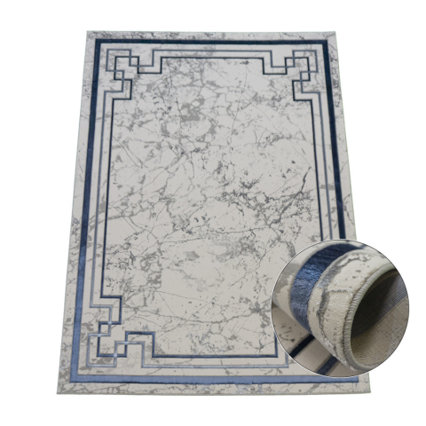 ALLIANZ modern szőnyeg kék színben, 60 x 100cm méretben. A Polyester + pamut hátoldal anyagból készült szőnyeg 10mm vastagságával kiváló kényelmet biztosít. Modern stílusa és letisztult színvilága tökéletesen illik korszerű enteriőrökbe, és stílusos megje
