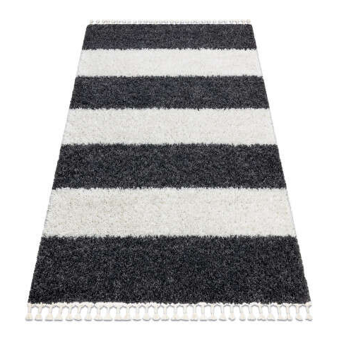 Berber Szőnyeg BERBER UNION 4079 Csík szürke / krém Rojt shaggy 200x290 cm lakástextília termékleírás