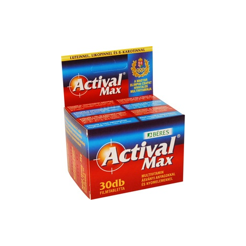 Actival Max filmtabletta komplex étrend-kiegészítő multivitamin ásványi anyagokkal és nyomelemekkel, valamint emelt C-vitamin tartalommal. Szervezetünknek szüksége van a létfontosságú vitaminok, ásványi anyagok és nyomelemek bizonyos mennyiségű napi b