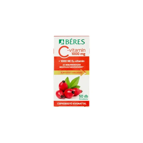 1 kép Béres Gyógyszergyár Zrt. Béres C-vitamin 1000 mg csipkebogyó kivonattal + D3-vitamin 50db