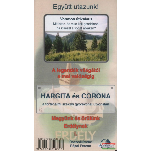 Hargita turista térkép és Korona térkép a történelmi gyosvonat útvonalán, vonatos útikalauz