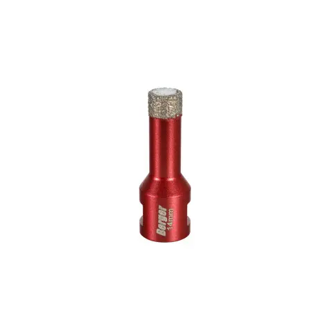 BERGER menetes gyémánt fúrókorona 14x63xSH10mm/M14 • Gránit, márvány, kerámialap, porcelán, csempe fúrására alkalmas, gyors és sima lyukfúrást biztosít • M14 menetének köszönhetően adapter nélkül is könnyen felszerelhető sarokcsiszolókra • Csökkentett törésveszély, kevesebb hőtermelés, hosszabb élettartam • Precíz furatok és kiemelkedő élettartam még a legkeményebb anyagok esetén is • Alacsony fordulatszámon, fordulatszám-szabályzós sarokcsisz