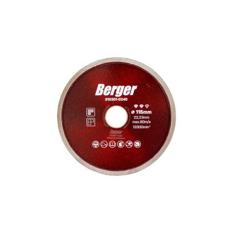 BERGER csempe gyémánttárcsa 115x22,23/SH5mm • Szinterezett, folyamatos vágóéllel ellátott gyémánttárcsa • Burkolóanyagok vágására sarokcsiszoló gépekkel vagy asztali csempevágó gépekkel: burkolólap, járólap, csempe vágására