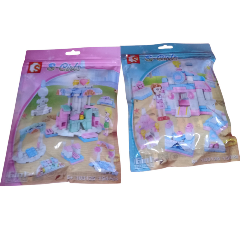Zacskós építőkészlet két színben.