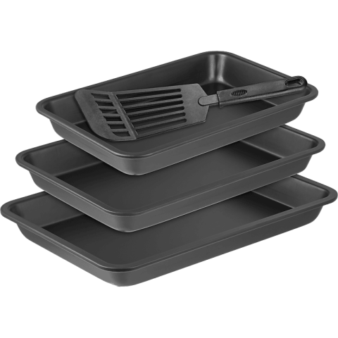Előnyök: Anyaga: Magas minőségű szénacél Időtálló, tartós tapadásmentes bevonat Könnyű tisztíthatóság Sütőbiztos Szett tartalma: 1 x kisebb tepsi 28.5x19.5x3.5cm 1 x közepes tepsi 31.5x21.5x3.5cm 1 x nagyobb tepsi 34x24x3.5cm 1 x fordítólapát