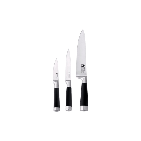 Masterpro rozsdamentes acél kés szett.Csúszásmentes markolattal.Szett tartalma: Chef kés (20cm), univerzális kés (12,5cm) és hámozó kés (8,75cm