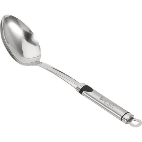 Bergner rozsdamentes tálalókanál, 34 cm hosszú és 7 cm átmérőjű. Ez a konyhai merőkanál króm-nikkel rozsdamentes acélból készült, ami biztosítja tartósságát és hosszú élettartamát. Ideális levesek és mártások tálalásához.
