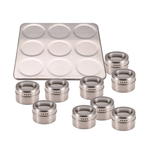 Bergner Fűszertartó szett mágneses tartóval: 9 db üvegcse praktikus tároláshoz Ez a Bergner fűszertartó szett tökéletes megoldás a konyhai fűszerek rendezett és praktikus tárolására. A 9 db 6,3 x 4,3 cm-es üvegcse mágneses tartóval rendelkezik, így k...