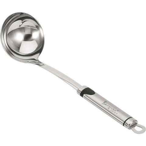A Bergner rozsdamentes konyhai merőkanál 33 cm hosszú, ideális levesek és mártások tálalásához. Króm-nikkel acélból készült, hosszú élettartamot és könnyű karbantartást biztosít. Átmérő: 90 mm.