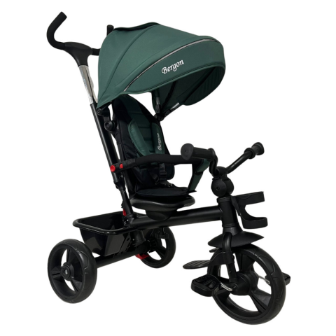 Bergon tricikli 360°-ban forgatható üléses Szülő irányíthatja az állítható szülőkarral Szülőkar, kupola és egyéb alkatrészek eltávolítása után tricikliként funkcionál Ergonomikus kialakítású, modern felépítés Ülés 180 fokban elforgatható, így a gyermek a