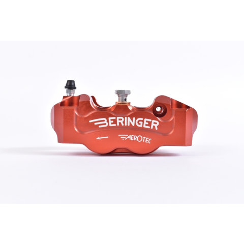 BERINGER Aerotec féknyereg radiális bal 4 dugattyús Ø 32mm, 108mm piros 4R11AR-S Alacsony fejű csavar a házban mellékelve Közvetlenül a villára szerelhető, adaptív konzol nélkül Aerotec® technológia, szabadalmaztatott rendszer a betétvezetéshez Könnyű szétszerelést biztosító zár Csak Supermotard szereléshez használható (a tárcsát/főfékhengert/kereket hozzá kell igazítani)