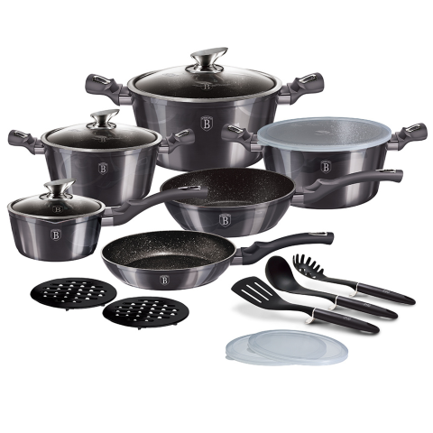 BERLINGER HAUS 18-részes főzőkészlet márvány bevonattal METALLIC LINE CARBON PRO EDITION edény termékleírás