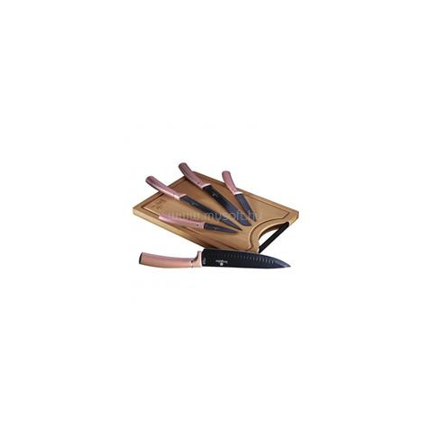 1 kép BERLINGER HAUS bambusz vágódeszkával, pink 6 részes késkészlet (BH/2554A)