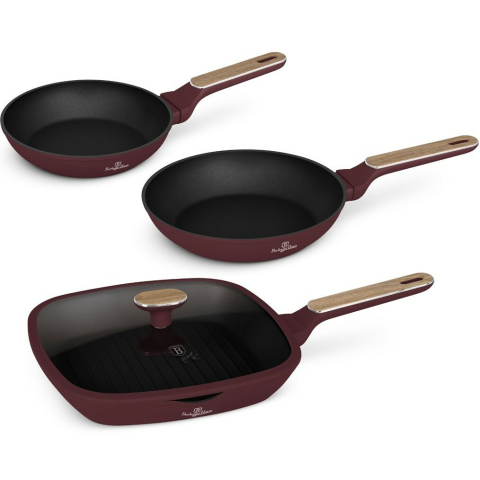1 kép BERLINGER HAUS BerlingerHaus Leonardo Nordic titánbevonatúserpenyő szett, 3+1 db, bordó