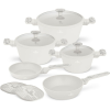A német BerlingerHausmárka Sahara Marble edénykészlete ötvözi a modern dizájnt, a tartós anyagokat és a mindennapi főzéshez szükséges praktikumot. Az elegáns, krém színű kivitel márvány részletekkel friss megjelenést kölcsönöz a konyhának, ugyanakkor teljes mértékben funkcionális és megbízható edényeket kínál a legkülönbözőbb ételek elkészítéséhez.Minden darab kiváló minőségű öntött alumíniumból készül, és háromrétegű TitanPro titánbe