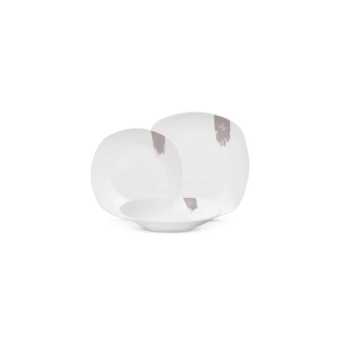 A német BerlingerHaus márkaétkészlete fehér és szürke színkombinációjával tökéletesen ötvözi az eleganciát és a praktikumot. A tiszta fehér porcelán kiegészül egy diszkrét szürke díszítéssel, amely modern és egyben időtálló hatást kelt. A szett kialakításának köszönhetően mindennapi étkezésekhez és ünnepi alkalmakhoz egyaránt alkalmas, amikor stílusos jellege igazán érvényesül. A tányérok prémium porcelánból készültek, amely szilárdságá