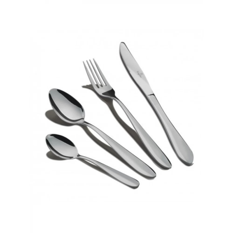 - Anyaga: rozsdamentes acél tükör fényes bevonattal A szett tartalma: - Étkező kés 6 db 6,0 mm - Étkező villa 6 db 3,0 mm - Étkező kanál 6 db 3,0 mm - Teás kanál 6 db 2 mm