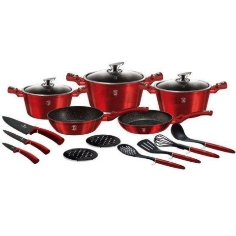 1 kép BERLINGER HAUS BH-6162 Burgundy Metallic Line 17 részes edénykészlet