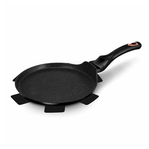 Berlinger Haus Palacsintasütõ 28 cm márvány bevonat Black Rose Collection BH 6181 - Elegáns kivitelezésû, kiváló minõségû palacsintasütõ - Anyaga: k ovácsolt alumínium , márvány bevonat - Indukciós fõzõlapon is használható - Méret: átmérõ 28cm - Kevés zsiradékkal használható - Könnyen tisztítható - Korrózió mentes márvány bevonattal - Károsanyag mentes - Mosogatógépben mosható - Szín: fekete