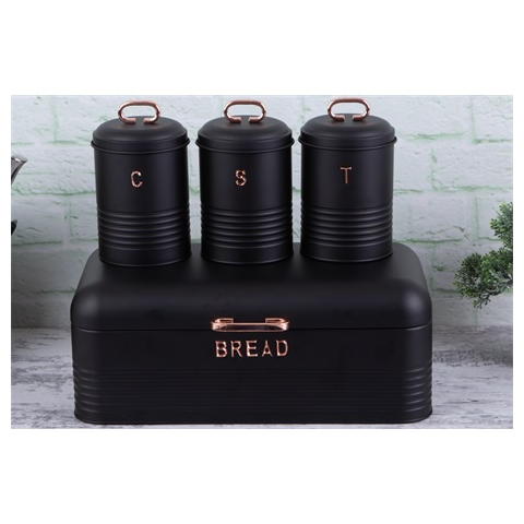 A szett egy kenyértartóból, és három tárolóból áll, amelyek zárórendszere megőrzi a benne tárolt fűszerek aromáját. A modern és letisztult design pedig stílusosan illeszkedik minden konyhába, és biztosan lenyűgözi a vendégeket.