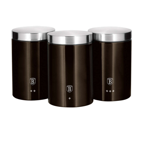 Berlinger Haus 3 részes fekete rozsdamentes acél tároló szett: Stílusos és praktikus konyhai tárolás ✨ Ez a 3 részes Berlinger Haus tároló szett tökéletes megoldás a cukor, tea és kávé tárolására. A rozsdamentes acélból készült tartók elegánsak, tar...