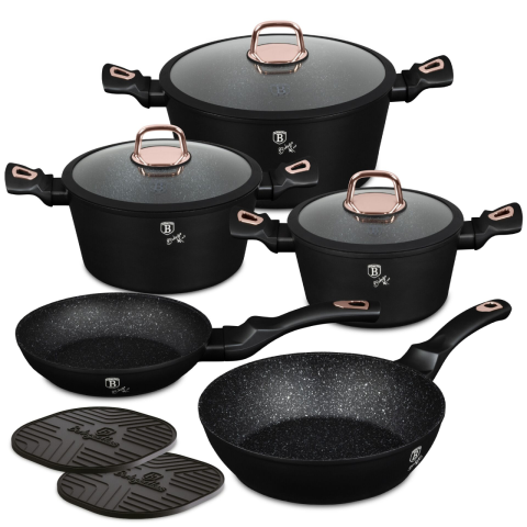 1 kép BERLINGER HAUS BH/8168N Kovácsolt Alumínium Edénykészlet - Fekete / Rózsaarany (10 részes)