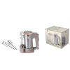 A mixer műanyag és rozsdamentes acél kombinációjából készült, amely biztosítja a tartósságot és a könnyű tisztíthatóságot. A rozsdamentes acél habverők és tésztakeverő karok garantálják a hatékony keverést és habverést. A csomag tartalmaz 2 db tojás- és