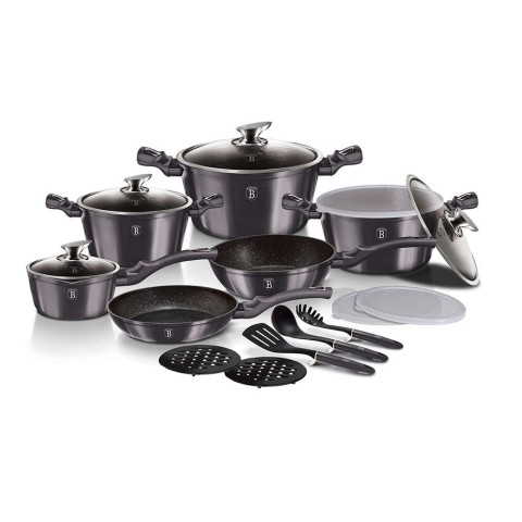 BERLINGER HAUS Carbon Pro BH 6887 18 darabos márványozott kerámia készlet edény termékleírás