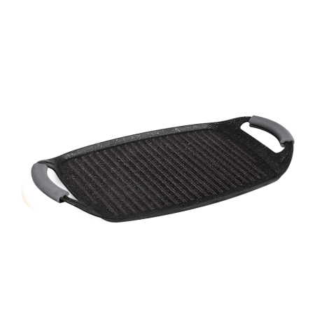 Grillező lap 47cm METALLIC LINE CARBON PRO EDITIONA lap kovácsolt alumíniumból készült és 3 rétegű márvány bevonattal rendelkezik. Turbo indukció-alapon működik. Sütőben is használható +220°C-os hőmérséklete, ezenkívül mosogatógépben is tisztítható, így tisztítása rendkívül egyszerű. 2 db lecsatolható szilikon fogantyúval van ellátva. Környezetbarát, nem tartalmaz PFOA-t, ólmot és kadmiumot.Technikai paraméterek:Méret: 47 x 29 cmAnyag: alumínium