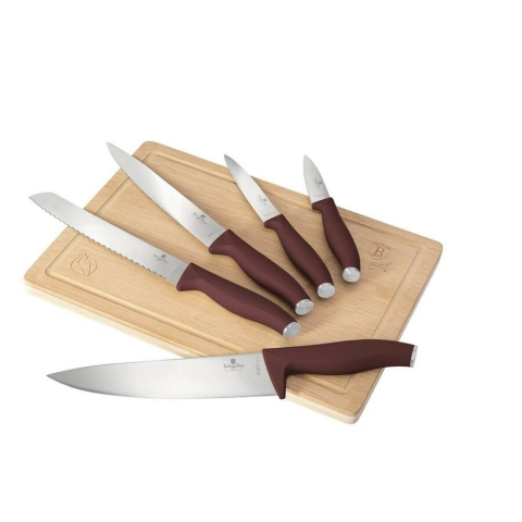 Berlinger Haus Leonardo Bordó Késkészlet Bambusz Vágódeszkával - Elegancia és Precizitás a Konyhádban 🔪 A Berlinger Haus Leonardo kollekciójának ez a 6 részes késkészlete nem csupán egy eszköz, hanem a konyhád éke is. A bordó szín és a stílusos kiala...