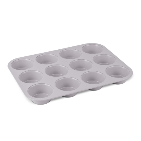 Anyaga : Nehéz minőségű szénacélból készült , amely kiváló hőelosztást és hosszú élettartamot biztosít. Méret : 35 x 26,5 x 3 cm , 12 normál méretű muffin vagy cupcake egyidejű sütésére tervezve . TitanPro tapadásmentes bevonat Háromrétegű védelem : A 3x