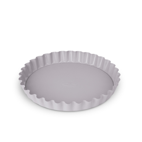 A forma szénacélból készült, titánPro tapadásmentes bevonattal, amely biztosítja a hosszú élettartamot és a könnyű tisztíthatóságot. A nehéz acél szerkezet garantálja a stabilitást és a megbízhatóságot sütés közben. A 28x3,5 cm-es méret ideális torták és