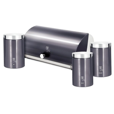 1 kép Berlingerhaus Carbon PRO Line Kenyértartó + tárolóedény szett, 4 db