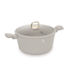 3x tartósságú tapadásmentes titánPro bevonat Nem melegedő ergonomikus puha tapintású nyél Edzett üveg fedő könnyen záródó hőálló szilikon kialakítással Rozsdamentes acél fogantyú arany PVD bevonattal Vízszűrős fedél Letisztult, minimalista stílus Matt