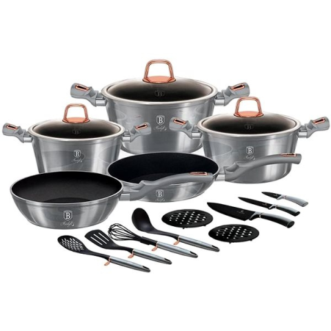 Teljes Berlingerhaus Moonlight Edition Titán bevonatos edénykészlet, 17 db termékleírás