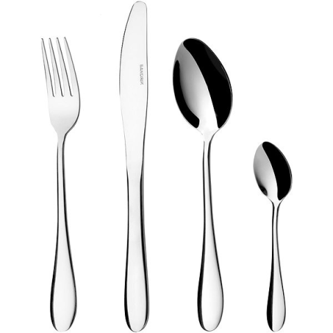 Evőeszközkészlet - étkezővilla, étkezőkés és étkezőkanál, fényes felületkezelés, ergonomikus, alkalmas mosogatógépbe, 24 db A remek BERNDORF UNI evőeszközkészlet, 24 db legfontosabb tulajdonságai A modern Berndorf Sandrik evőeszköz készlet élvezetesebbé teszi az étkezési élményt A csomag tartalma: étkezővilla, étkezőkés és