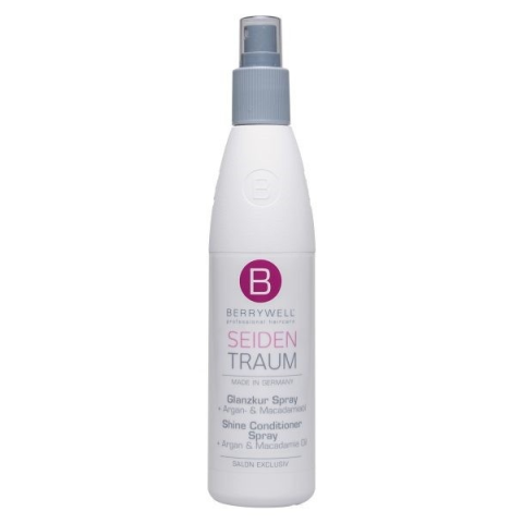 Berrywell Fény Kondícionáló Spray 251ml BWL-B18059 A SeidenTraum professzionális hajápoló sorozat a selymes, fényes hajszerkezetért lett megalkotva. A kiváló minőségű parabénmentes spray kezelés, amely azonnali hatással van a ragyogóan fényes h