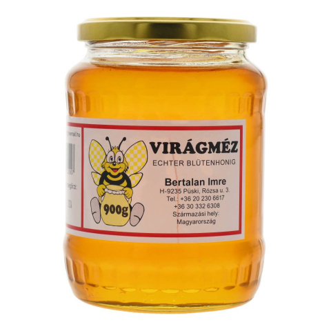 Bertalan virágméz 900 g Kellemesen lágy ízu méz, kiváló fertotleníto. Jó háziszere a meghuléses betegségeknek, a felso légutak hurutos elváltozásainak. Az egészséges táplálkozás jegyében helyettesítse étrendjében a fehér cukrot mézzel.