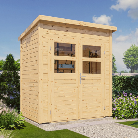 A klasszikus Bertilo Felix 1 kerti ház ideális tárolóhelyet kínál a kerti eszközök és kerti szerszámok számára. A kiváló minőségű északi lucfenyőből készült kerti ház kezeletlen kivitelben készült. Kompakt, 2,09 m2 alapterületével elegendő helyet biztosít kerti igényeihez. A 134 cm széles és 167 cm magas kétszárnyú ajtó könnyű belépést tesz lehetővé még nagyobb készülékekkel és kerti eszközökkel is. A kerti ház időtlen és klasszikus formatervez