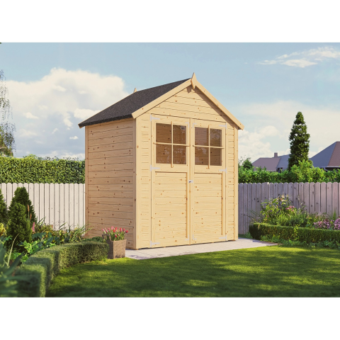 A klasszikus Bertilo Osterbek 1 kerti ház a kerti eszközök és kerti szerszámok ideális tárolóhelye. Az összes fa alkotóelem kiváló minőségű, natúr, északi lucfenyőből készült. Kompakt, 2,09 m2 alapterületével ez a kerti ház elegendő helyet kínál kerti igényeihez. A 132 cm széles és 165 cm magas kétszárnyú ajtónak köszönhetően nagyobb készülékekkel és kerti eszközökkel is be lehet lépni. A kerti ház időtlen és klasszikus formatervezésű, természete