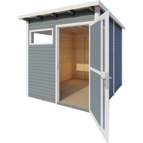 A 234 cm × 226 cm méretű, szürke színű Bertilo Pentus 2 kerti ház a modern kialakítást ötvözi praktikus térkialakítással. A magas falak és a sok fény sokoldalú felhasználást tesz lehetővé. A fal- és ablakelemek rugalmasan pozícionálhatók. A Pentus modellek kiváló minőségű, hengerzárral ellátott ragasztott fa ajtóval felszereltek (ajtónyílás 186 cm × 91 cm), amely a színes változatoknál mindkét oldalon kezelt. Kiváló minőségű félnyeregtetős kerti h