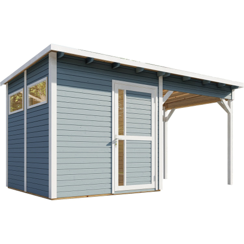 A Bertilo fa kerti ház tágas kialakítású 10,49 m2 alapterületének köszönhetően. Átjárási szélessége 91 cm, átjárási magassága 186 cm. A széles bejárat megkönnyíti a kerti faházba való belépést, akár nagyobb gépekkel, kerti eszközökkel, kerékpárokkal és kerti bútorokkal is. Az orom magassága 232 cm, aminek köszönhetően a ház belmagassága kellemes. A padlót a csomag tartalmazza. Modern kialakítás A fa kerti ház modern kialakításával és egyszerű sz