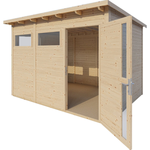 A 234 cm × 337 cm méretű, natúr színű Bertilo Pentus 3 kerti ház a modern kialakítást ötvözi praktikus térkialakítással. A magas falak és a sok fény sokoldalú felhasználást tesz lehetővé. A fal- és ablakelemek rugalmasan pozícionálhatók. A Pentus modellek kiváló minőségű, hengerzárral ellátott ragasztott fa ajtóval felszereltek (ajtónyílás 186 cm × 91 cm), amely a színes változatoknál mindkét oldalon kezelt. Kiváló minőségű félnyeregtetős kerti há