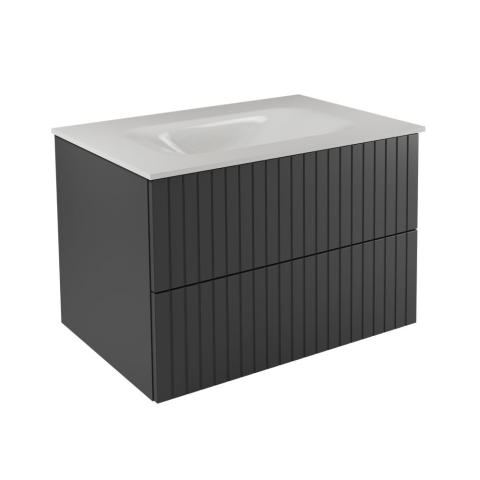 AKYA LINEA fürdőszobabútor – matt fegyverszürke Elegáns mosdószekrény fényes fehér mosdóval és matt fegyverszürke előlappal. Kétféle méretben elérhető (66 vagy 76 cm), személyre szabható leeresztő és csaptelep-lyuk opciókkal. Egyedi megrendelésre készül.